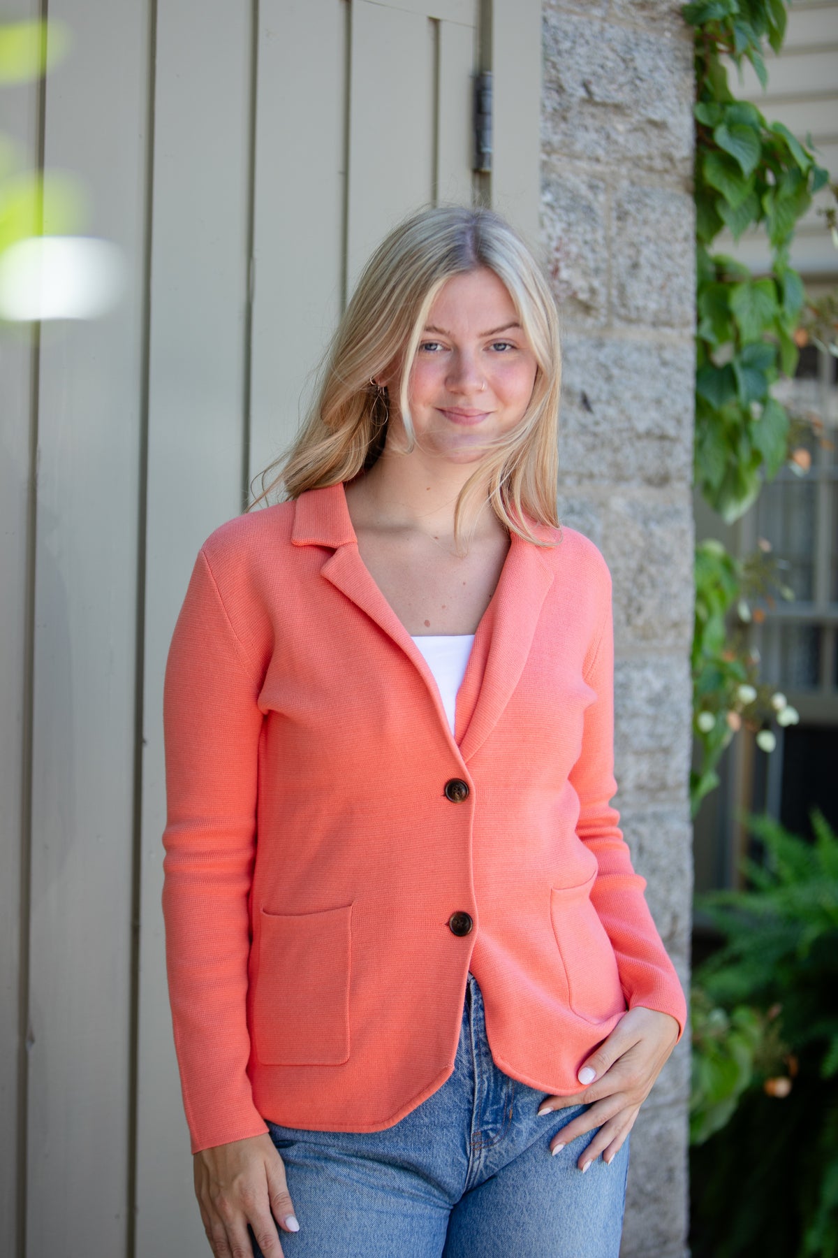 The perfect pop of Color this Spring. Layer this classic BURGESS Blazer over the Gwen Mixed Media dress or the Laila Tier Skirt. This knit blazer offers a fitted silhouette in a comfortable cotton knit. The notched collar and patch pockets add a touch of sophistication. This blazer's fabulous fit, flattering shape, and practicality keep them flying off the shelves. Grab your Milly Blazer while you still can.